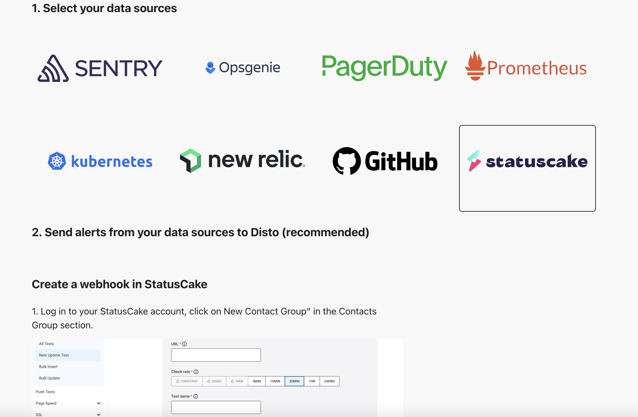 To receive alerts from StatusCake, select StatusCake when creating a project and follow the instructions to allow alerts to be sent to that project.