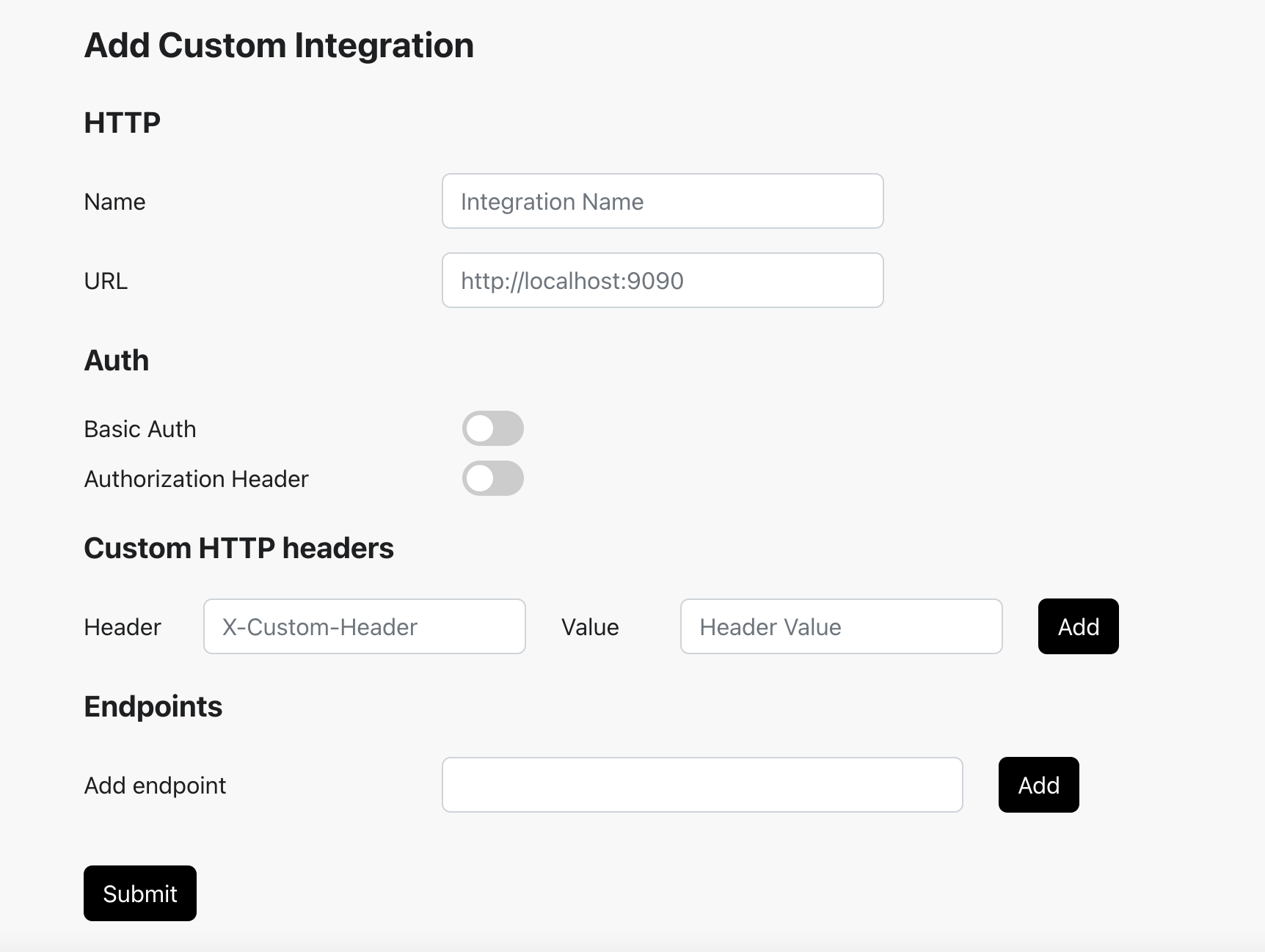 - Custom HTTP Headers: Custom HTTP Headers to add to the request