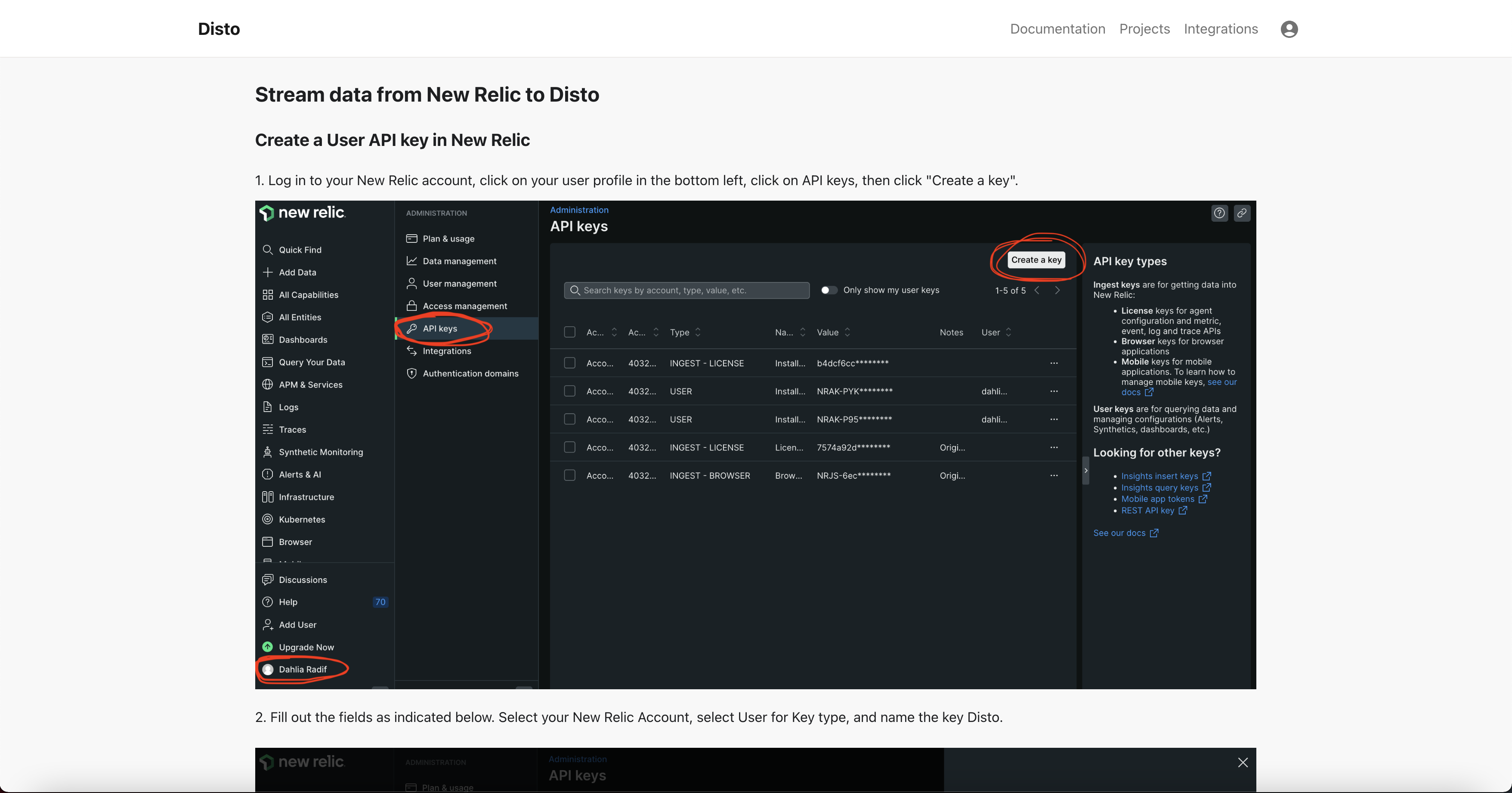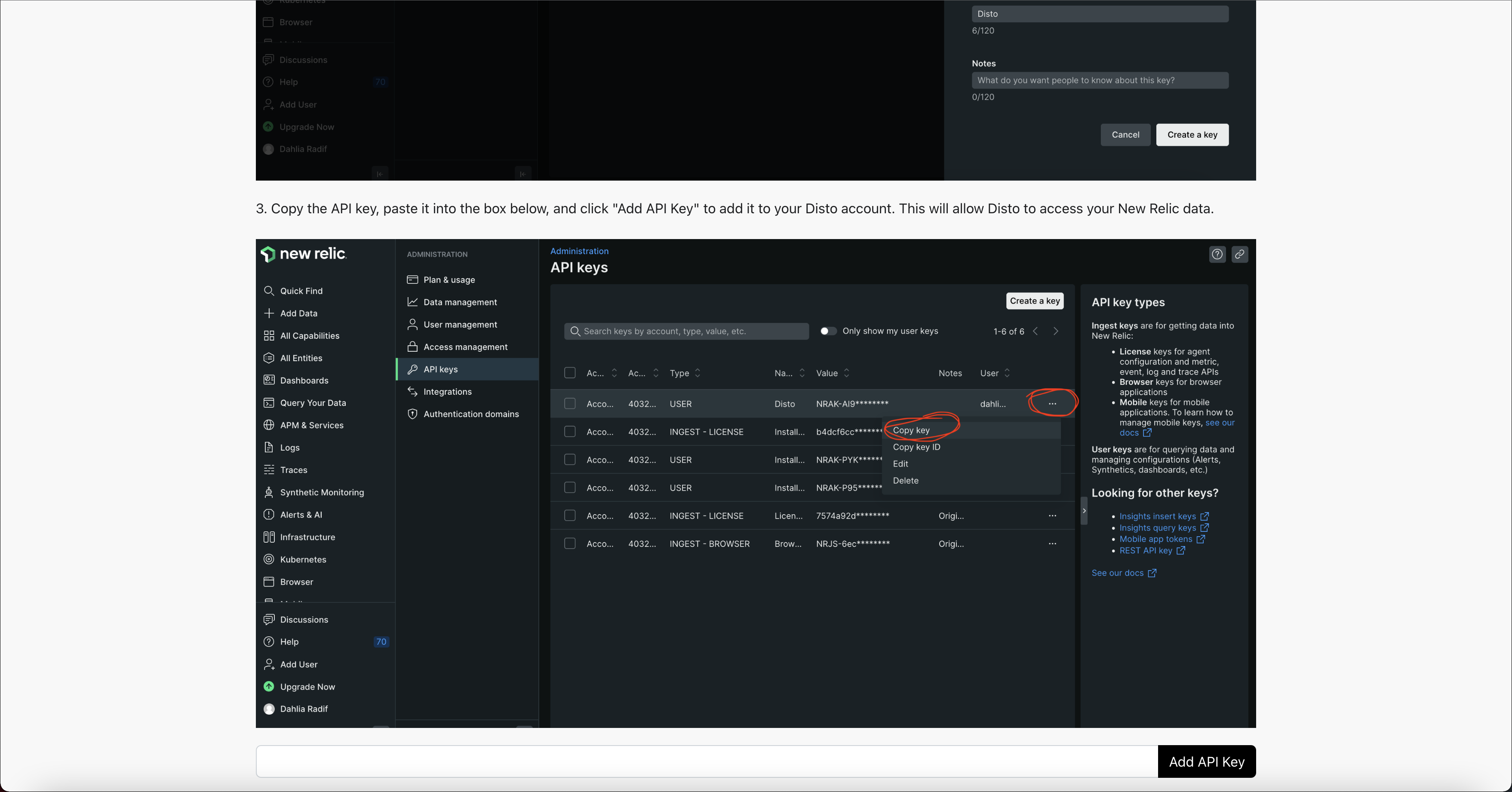 To integrate with New Relic, add your New Relic API key as indicated below.