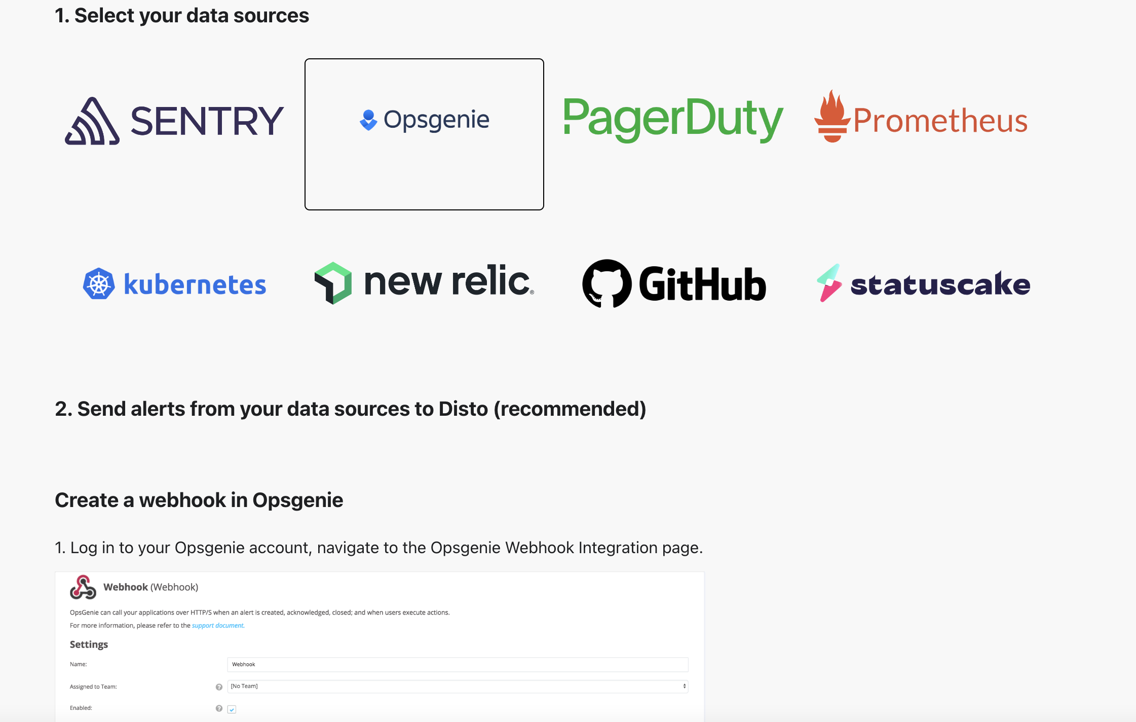 To receive alerts from Opsgenie, select Opsgenie when creating a project and follow the instructions to allow alerts to be sent to that project.