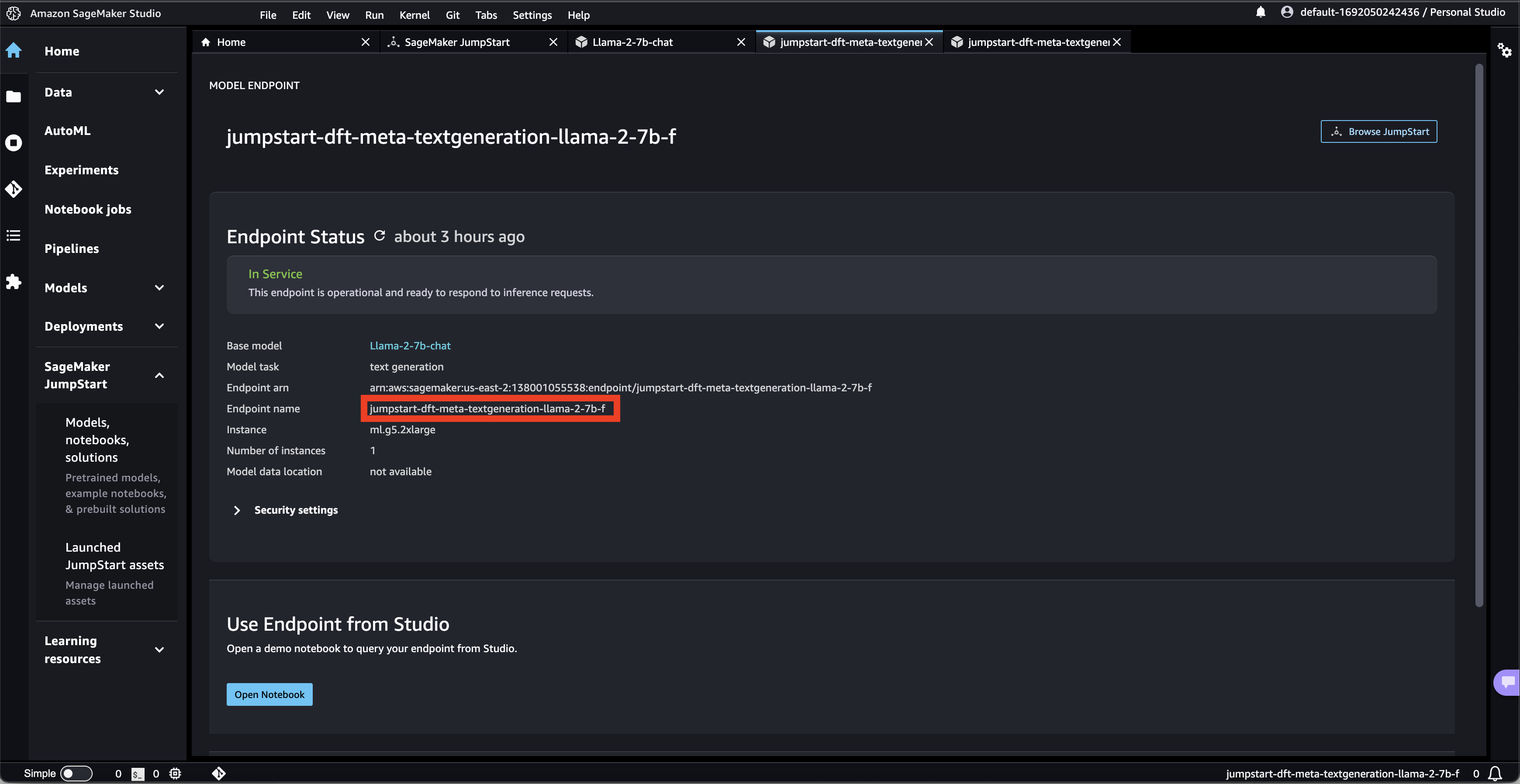 - Copy your Endpoint name. This will be the value for sagemaker-endpoint-name in the deploy script.