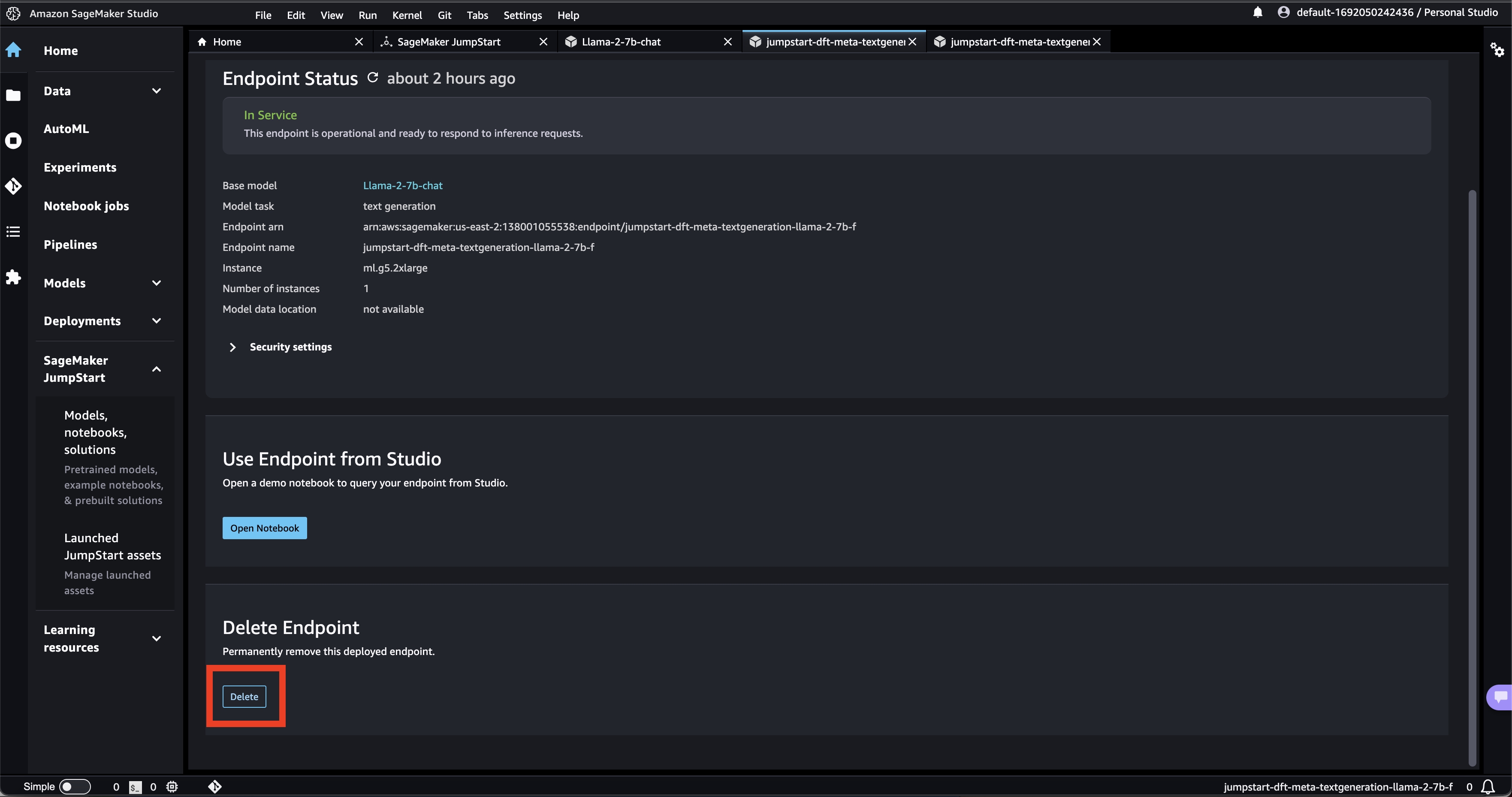 - If you wish to delete the endpoint, click on “delete”.